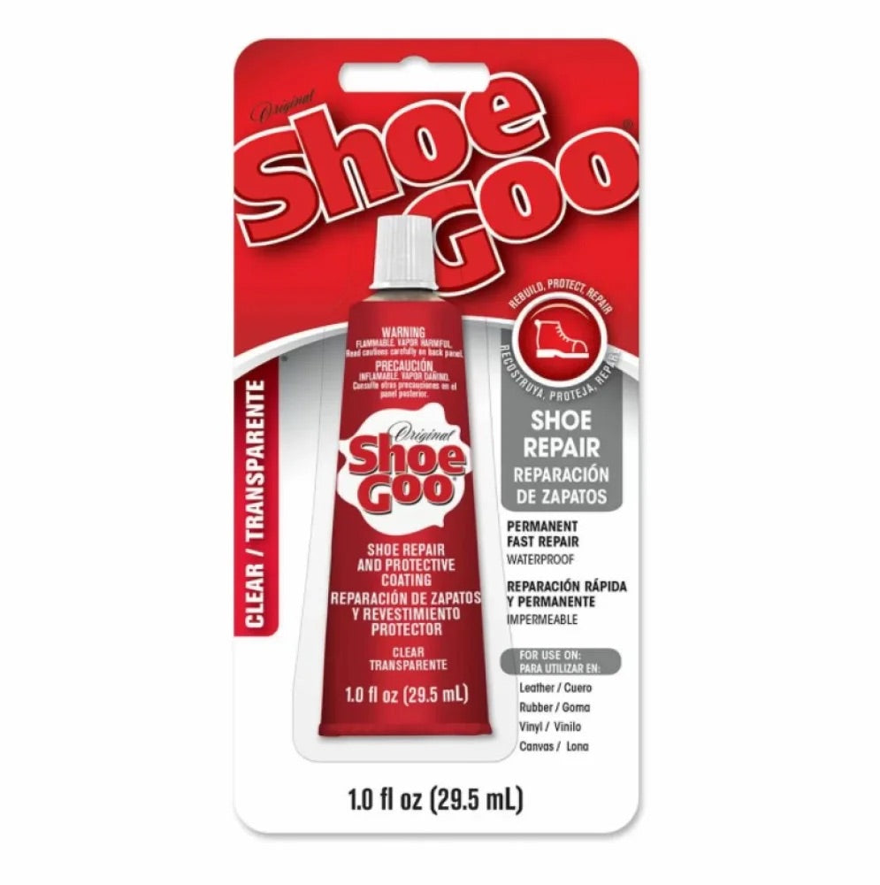 Shoe GOO is the #1 shoe repair adhesive! It’s ideal for fixing worn soles or damaged heels, coating shoes to prevent premature wear and sealing galoshes, waders or rubber boots. The unique formula is designed for strong abrasion resistance and better adhesion to flexible materials.