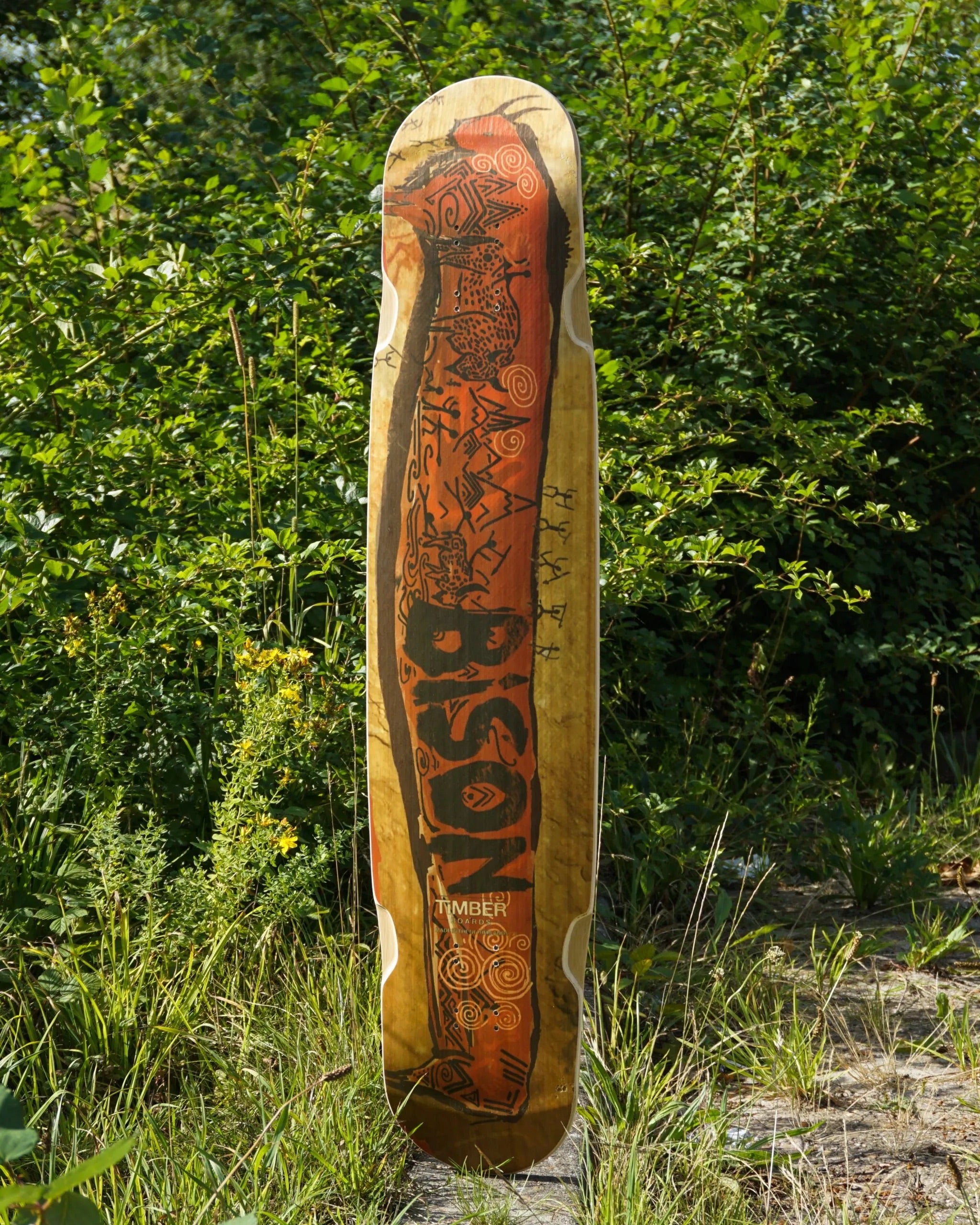 It’s back! One of the first boards from the beginning of Timber Boards.  The Bison is back from a long journey in search of greener pastures, lots of soul-searching and self-development it’s now reborn in a slightly shorter, more streamlined and modernized package with some new features. It’s got a more abrasive resistance top, long high kicks, lots of composite material to keep it together when it gets smacked around. Absolutely perfect if you want to feel like a cave person for a day.
