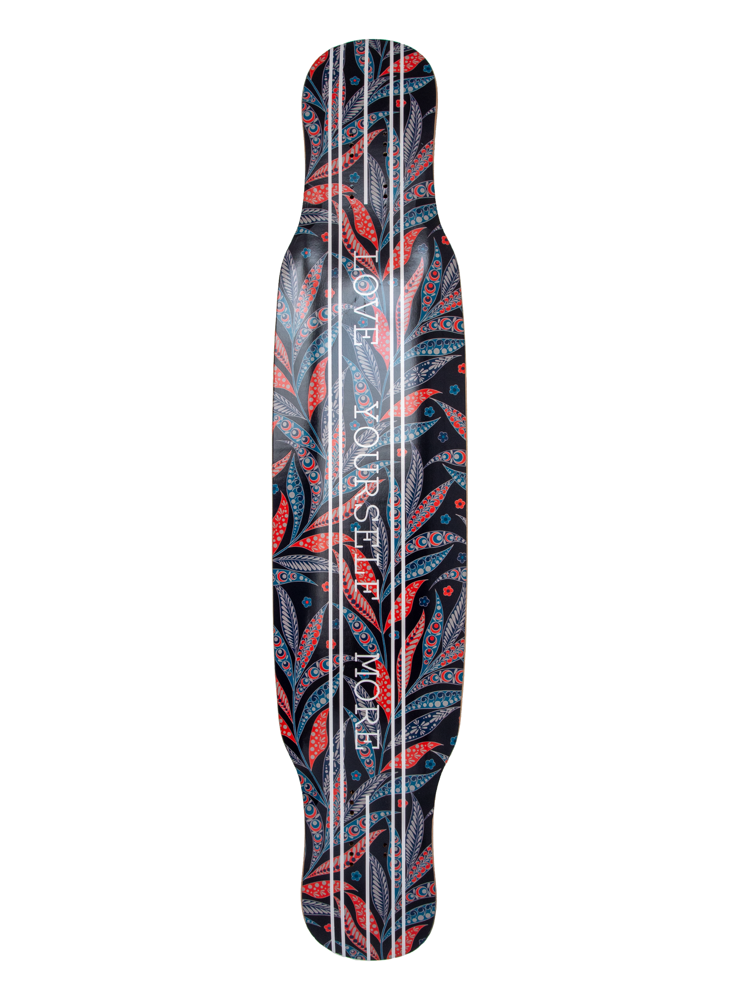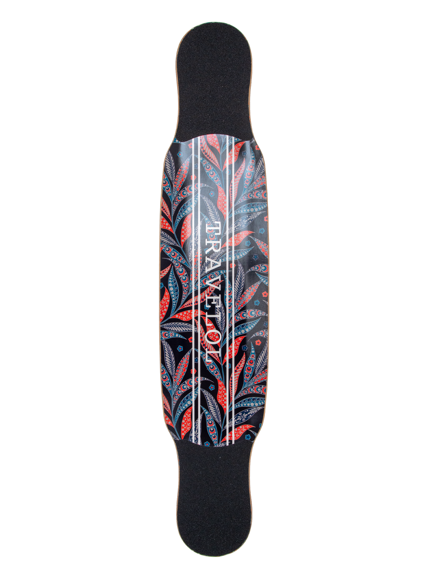 The Circe 46" longboard deck from Travelol is exquisitely designed. With its concave shape, wheel flares, double kick tail, and slight micro drop, this deck ensures precise foot placement without the need to glance down. These subtle yet effective features make it one of the most visually pleasing freestyle decks on the market.