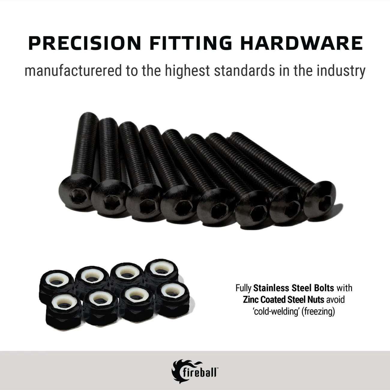 Dragon Stainless Steel Hardware is engineered to maximize durability and longevity to meet the needs of the new skateboarders to professional skateboarders and longboarders alike. Fear stripped hardware no longer.