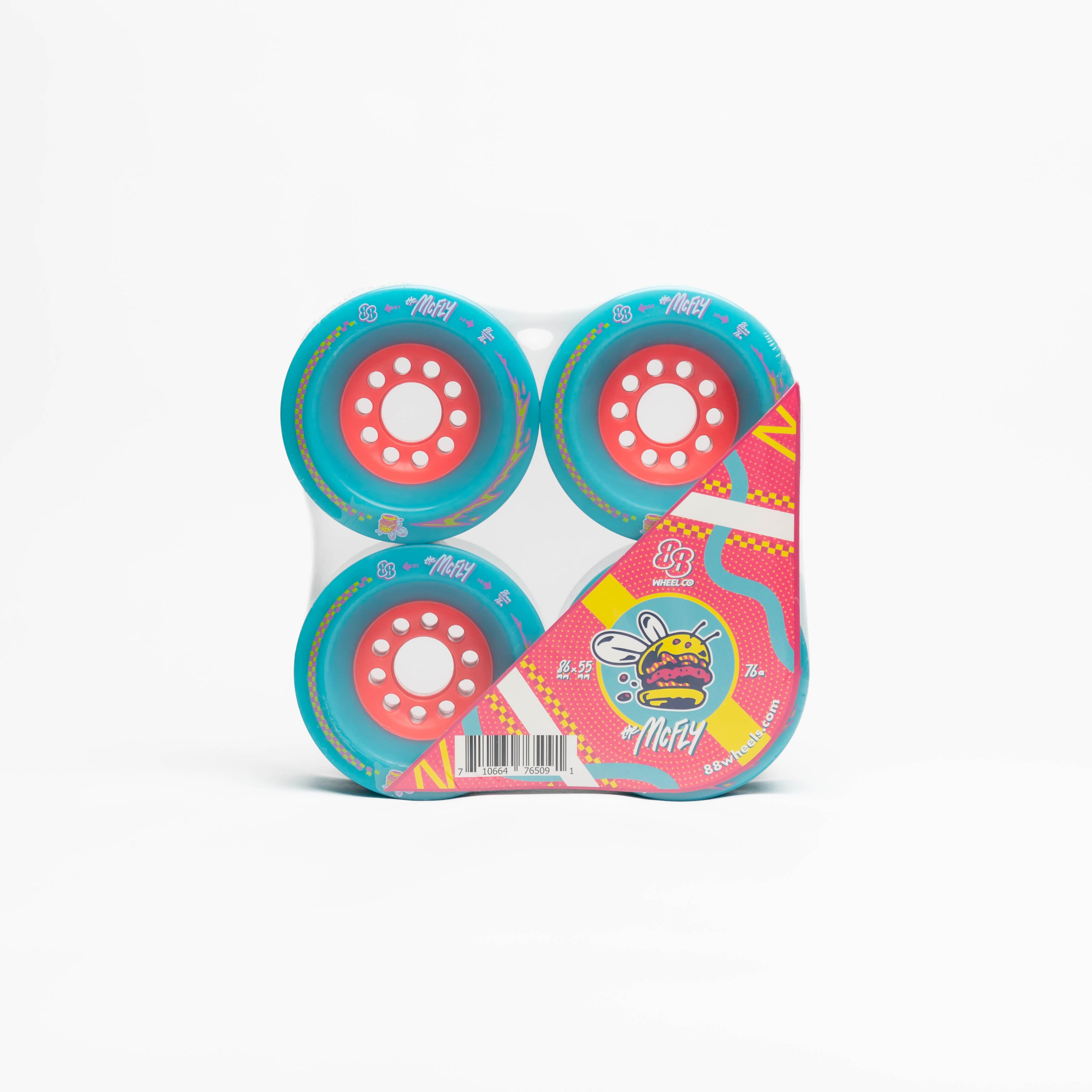 The McFly is large and in charge! Smooth and on the move! Fast and built to last! With its 86mm diameter and 76a soft, high rebound urethane, the McFly is an ideal wheel for drop through cruisers and distance boards, supplying superior rolling speed and plushness that will have riders feeling one with the road. These wheels feature an offset core and thick lips with a small radiused edge, smoothing out slide characteristics compared to similarly sized wheels, for the ultimate commuting and cruising experience. Roll over everything in your path! This special formula is resistant to chunking and virtually bubble free.